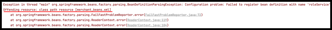 ClassPathXmlApplicationContext ctx = new ClassPathXmlApplicationContext();ctx.setConfigLocations("consumer_beans.xml", "merchant_beans.xml");ctx.refresh();org.javaboy.merchant.RoleService rs1 = ctx.getBean(org.javaboy.merchant.RoleService.class);org.javaboy.consumer.RoleService rs2 = ctx.getBean(org.javaboy.consumer.RoleService.class);